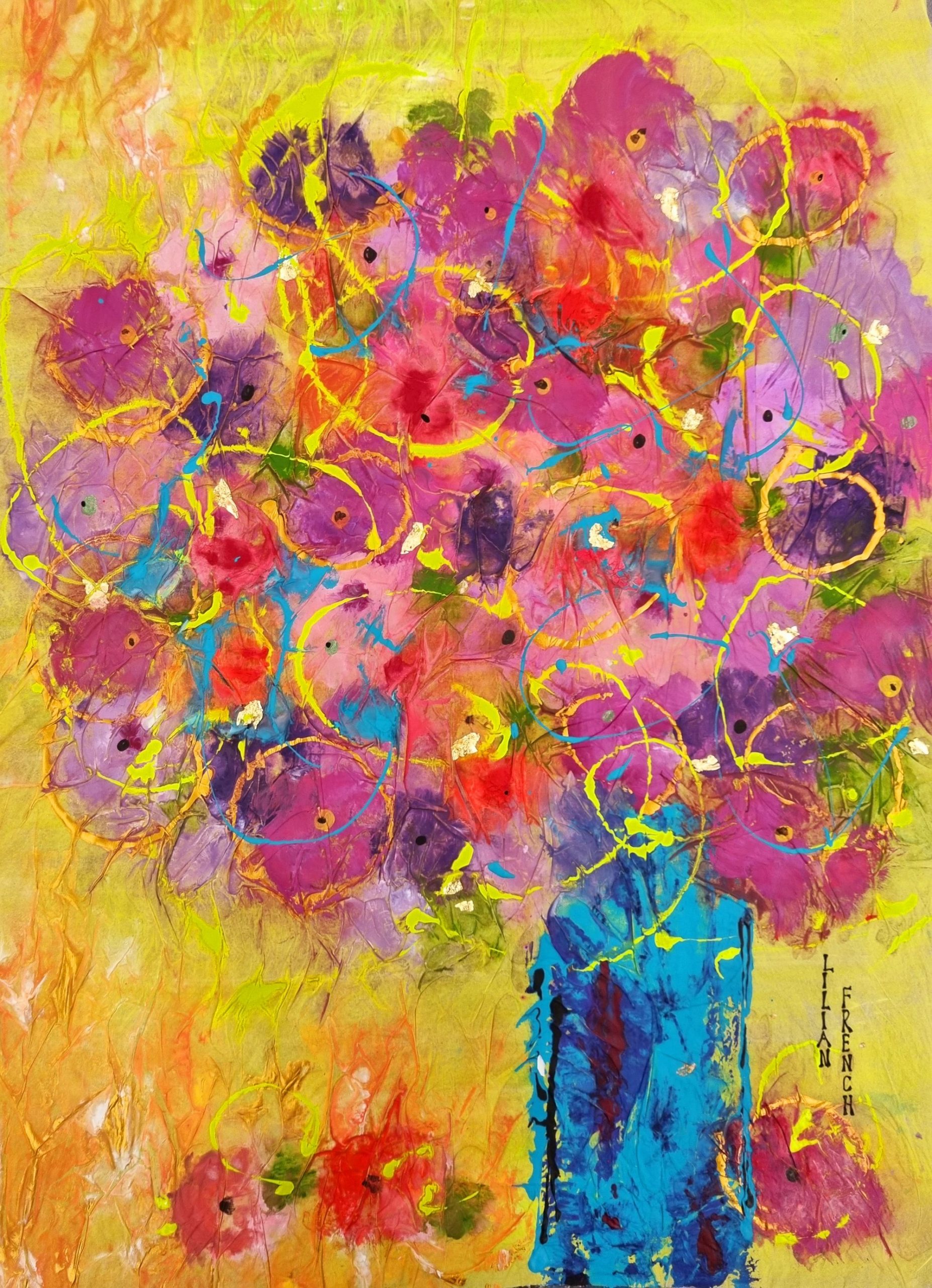 Acrylics, inks & gold leaf on tissue paper. SOLD